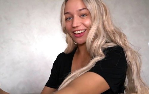 Домашняя запись с сексуальной блондинкой, как берёт в рот и садится голой кисой на парня.
